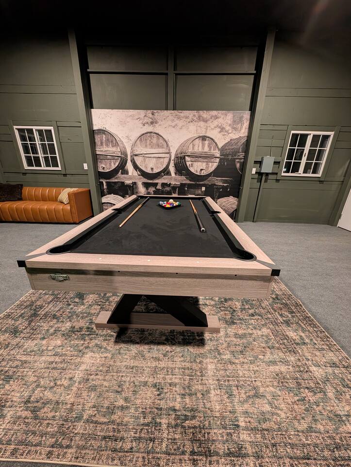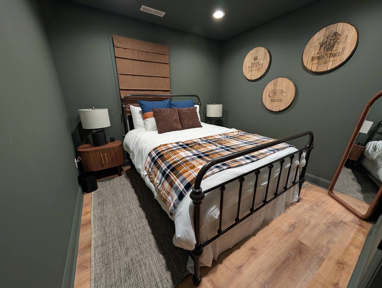 Our home comfortably accommodates large groups and can sleep up-to 16 guests. The home features amenities, many gathering spaces and personal touches where we hope you feel you are on vacation yet right at home! Highlights include: 🎬 Enjoy your favorite movies in the large movie theater with a popcorn maker 🏡 Head to the recreation barn for a chill hangout experience with TV, air hockey, pool table, golf simulator and comfy couches ⛳ SkyTrakmax golf simulator 🎤 Karaoke stage for unforgettable group entertainment 📺 Smart TVs throughout the home ☀️ Sunroom lounge a getting ready space filled with natural light and mirrors 🍽 Large dining area designed for group meals and gatherings 🎱 Spend time in the game room enjoying foosball, Mortal Kombat or Pac-Man Bedrooms & Sleeping Arrangements: The home includes 6 bedrooms with comfortable sleeping options for groups. Bedroom 1: King bed Bedroom 2: King bed Bedroom 3: Queen bed Bedroom 4: Queen bed and 2 Twin bunk beds Bedroom 5: King bed Bedroom 6: King bed All bedrooms include comfortable mattresses, cozy linens, and thoughtful lighting. Kitchen & Dining: The fully equipped kitchen makes it easy to prepare meals. • Modern appliances • 2 large dining tables - one inside, other out on the patio • Coffee station for morning routines • Breakfast nook • Plenty of cookware and utensils Outdoor features include: 🍽 Outdoor dining space 🔥- BBQ Gas Grill 🌿 Patio for fresh air and quiet moments It’s the perfect place to unwind after a day exploring the Bourbon Trail. Location The Amber & Rye is located in Frankfort, Kentucky, a central hub for the famous Kentucky Bourbon Trail. Guests love staying here for: 🥃 Bourbon Trail trips 🎉 Birthday celebrations 👰 Bachelor & bachelorette weekends 🎓 Graduation trips 🏇 Kentucky Derby weekend stays Nearby distilleries include: Buffalo Trace Distillery — 10 mi / 15 min Whiskey Thief Distilling Co. — 7 mi / 11 min Wild Turkey Distillery — 8 mi / 12 min Larrikin Bourbon Co. — 7 mi / 12 min Four Roses Distillery — 10 mi / 14 min Castle & Key Distillery — 13 mi / 16 mi Woodford Reserve Distillery — 15 mi / 19 min Bluegrass Distillers at Elkwood Farm — 17 mi / 19 min Bulleit Distilling Co. — 20 mi / 25 min Jeptha Creed Distillery — 23 mi / 26 min Heaven's Door Distillery — 24 mi / 35 min Angel's Envy Distillery — 49 mi / 49 min Rabbit Hole Distillery — 48 mi / 50 min Old Forester Distilling Co. — 49 mi / 50 min Whiskey Row — 49 mi / 50 min Willett Distillery — 47 mi / 50 min Preservation Distillery and Farm — 48 mi / 47 min Heaven Hill Distillery — 46 mi / 48 min Bardstown Bourbon Company — 46 mi / 49 min 🍇 Vineyards Rising Sons Home Farm Winery — 3 mi / 6 min Lovers Leap Vineyards and Winery — 5 mi / 10 min Prodigy Vineyards & Winery — 12 mi / 15 min Equus Run Vineyards — 20 mi / 22 min Wildside Winery — 20 mi / 28 min Castle Hill Winery — 23 mi / 29 min 1922 House Vineyards & Winery — 29 mi / 35 min Other attractions: The Kentucky Castle — 21 mi / 27 min Keeneland — 27 mi / 30 min Kentucky Horse Park — 30 mi / 30 min Churchill Downs — 52 mi / 55 min Ark Encounter — 54 mi / 58 min 🌉 Historic downtown Frankfort 🌊 Kentucky River views Kayak on Elkhorn creek ( 2 miles) House rules: No house parties. General Quiet Hours 10pm-7am. In accordance with local regulations and respect for our neighbors, please be mindful of excessive, unnecessary, and unreasonable noises. No smoking. Professional cleaning of interior spaces or garages will be $750. No parking on street, park in driveway only There are 4 external cameras on the property for your safety; 1 on front entry door, 1 on barn door, 1 on barn and 1 on front of the garage