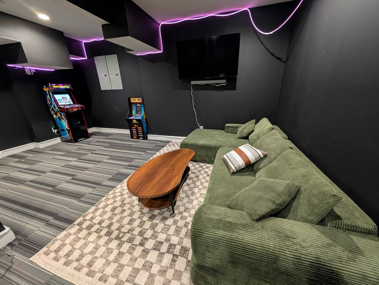 Enjoy theater, golf sim, arcade, and 10-acre serenity
